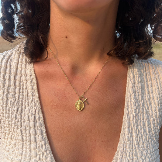 Collar VIRGEN MILAGROSA CRUZ DORADO