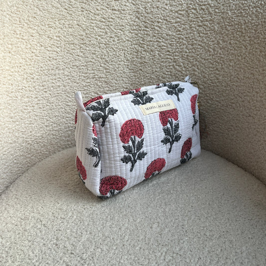 Pack de viaje compuesto por un bolso de viaje y tres neceseres (tallas L, S y XS), todo 100% algodón fabricado con telas block print de la India.