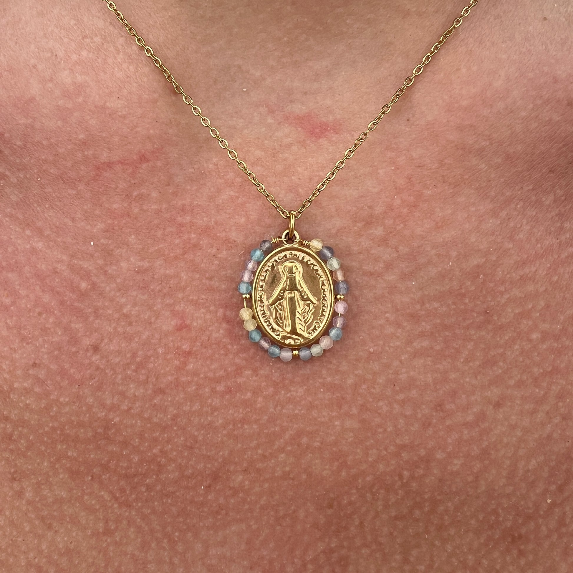 Collar VIRGEN PIEDRAS PASTEL DORADO