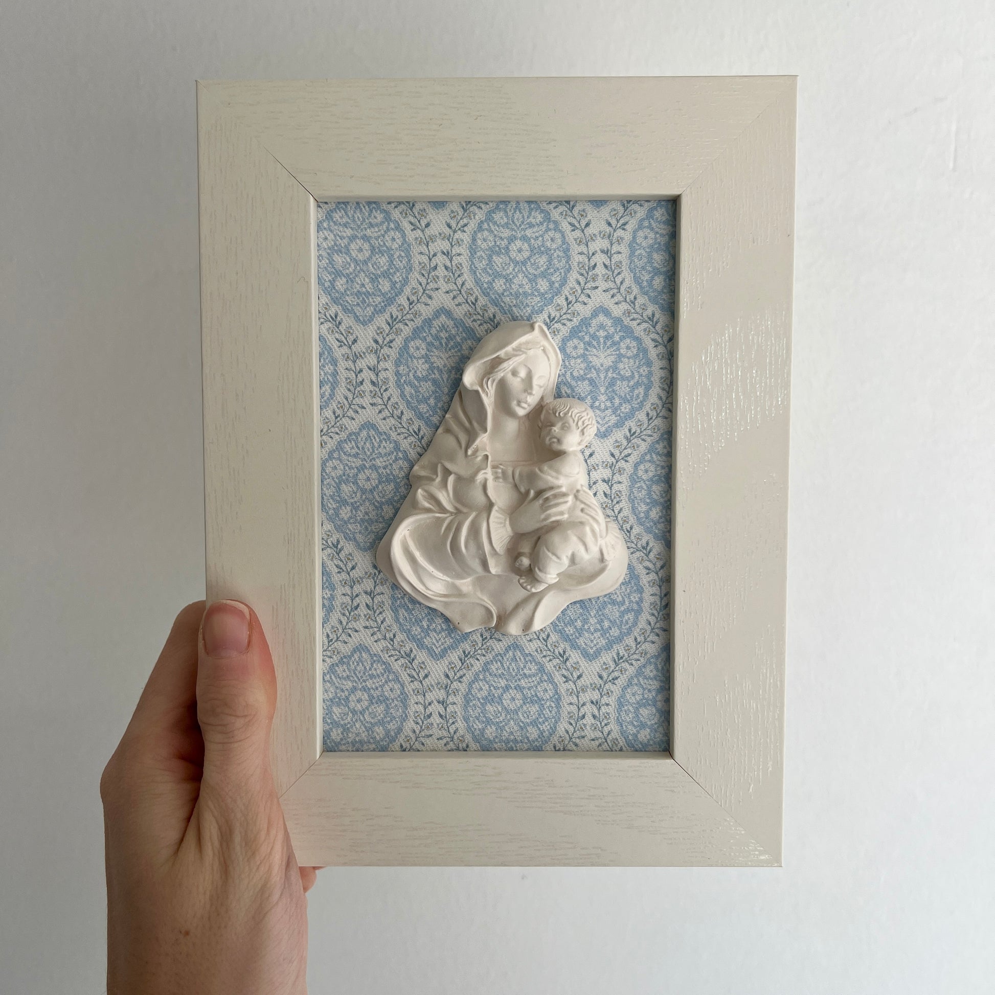PRE-VENTA Cuadro Virgen de la Familia - Motivos azules (marco blanco) | Se enviará el miércoles 10 de diciembre