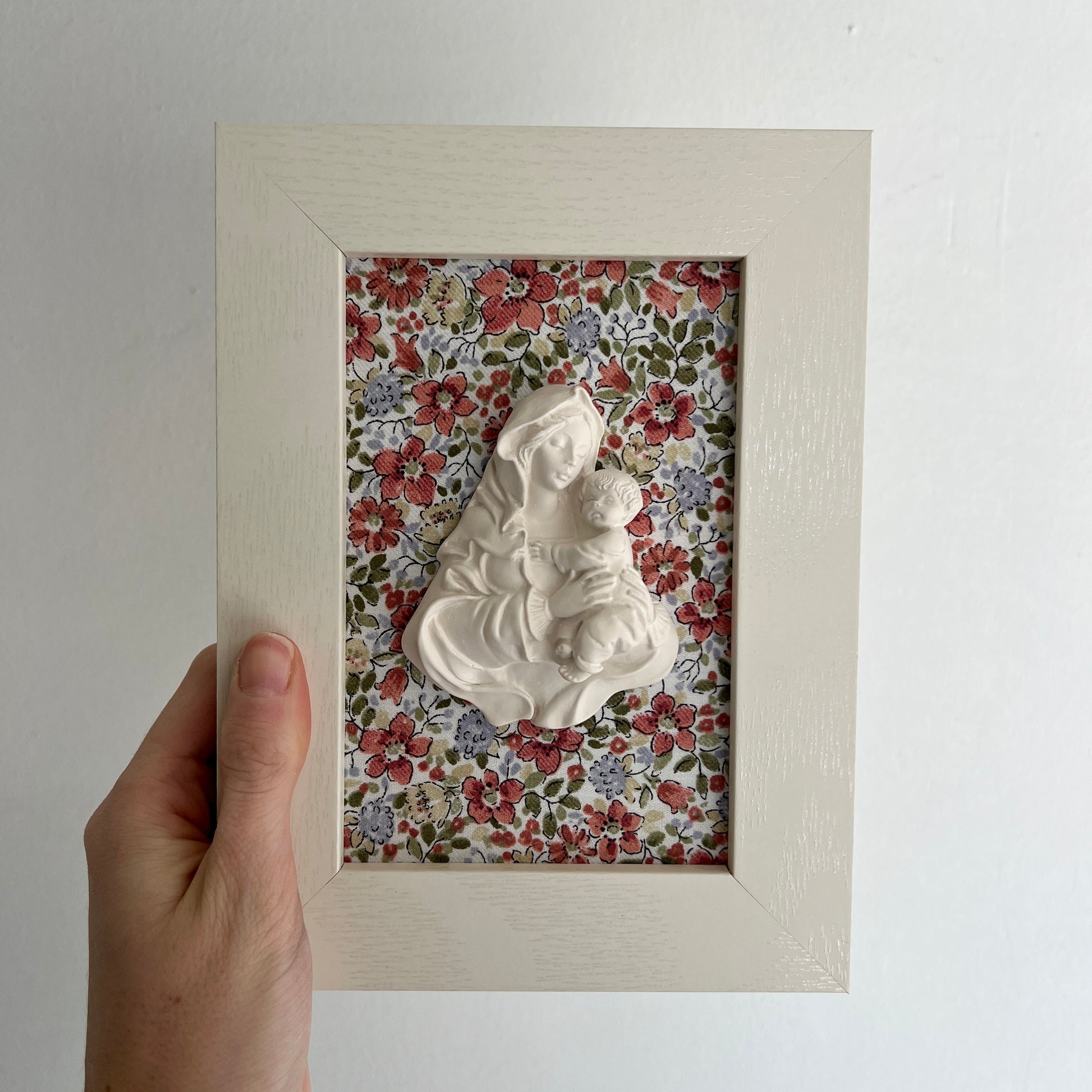 PRE-VENTA Cuadro Virgen de la Familia - Flores rojas y verdes (marco blanco) | Se enviará el miércoles 10 de diciembre