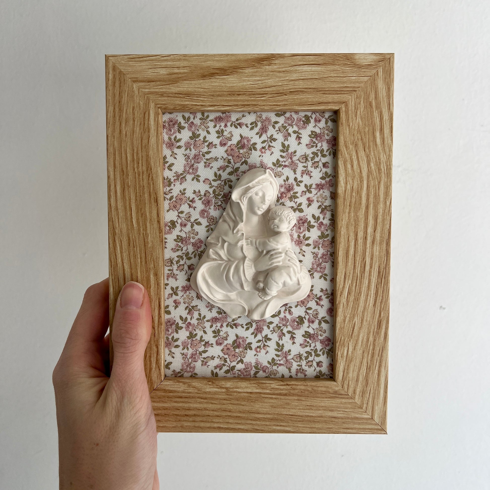 PRE-VENTA Cuadro Virgen de la Familia - Flores rosa empolvado (marco madera) | Se enviará el miércoles 10 de diciembre