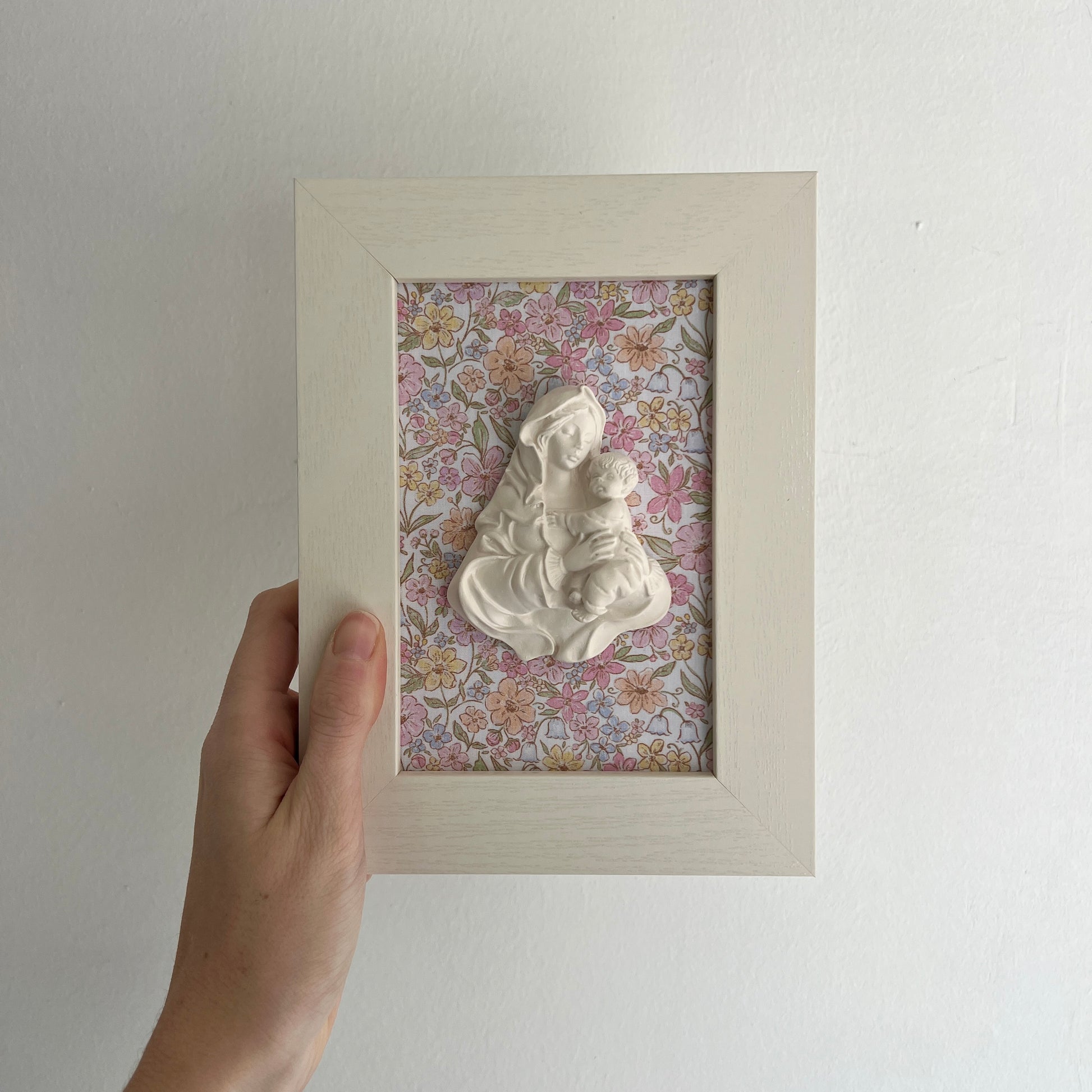 PRE-VENTA Cuadro Virgen de la Familia - Flores rosas y amarillas (marco blanco) | Se enviará el miércoles 10 de diciembre