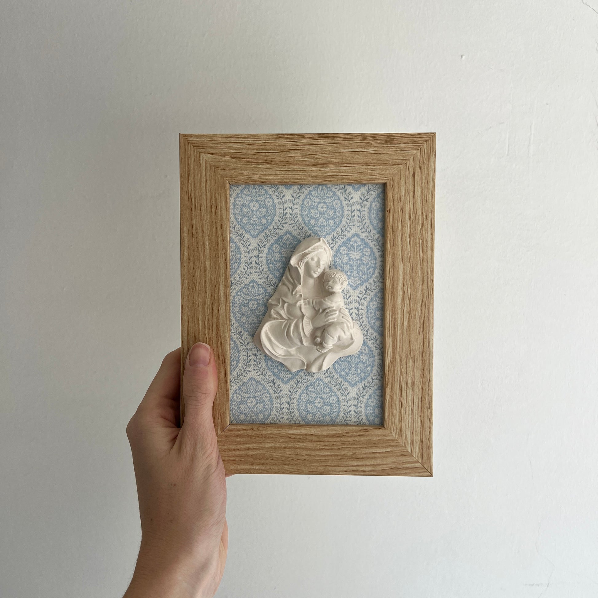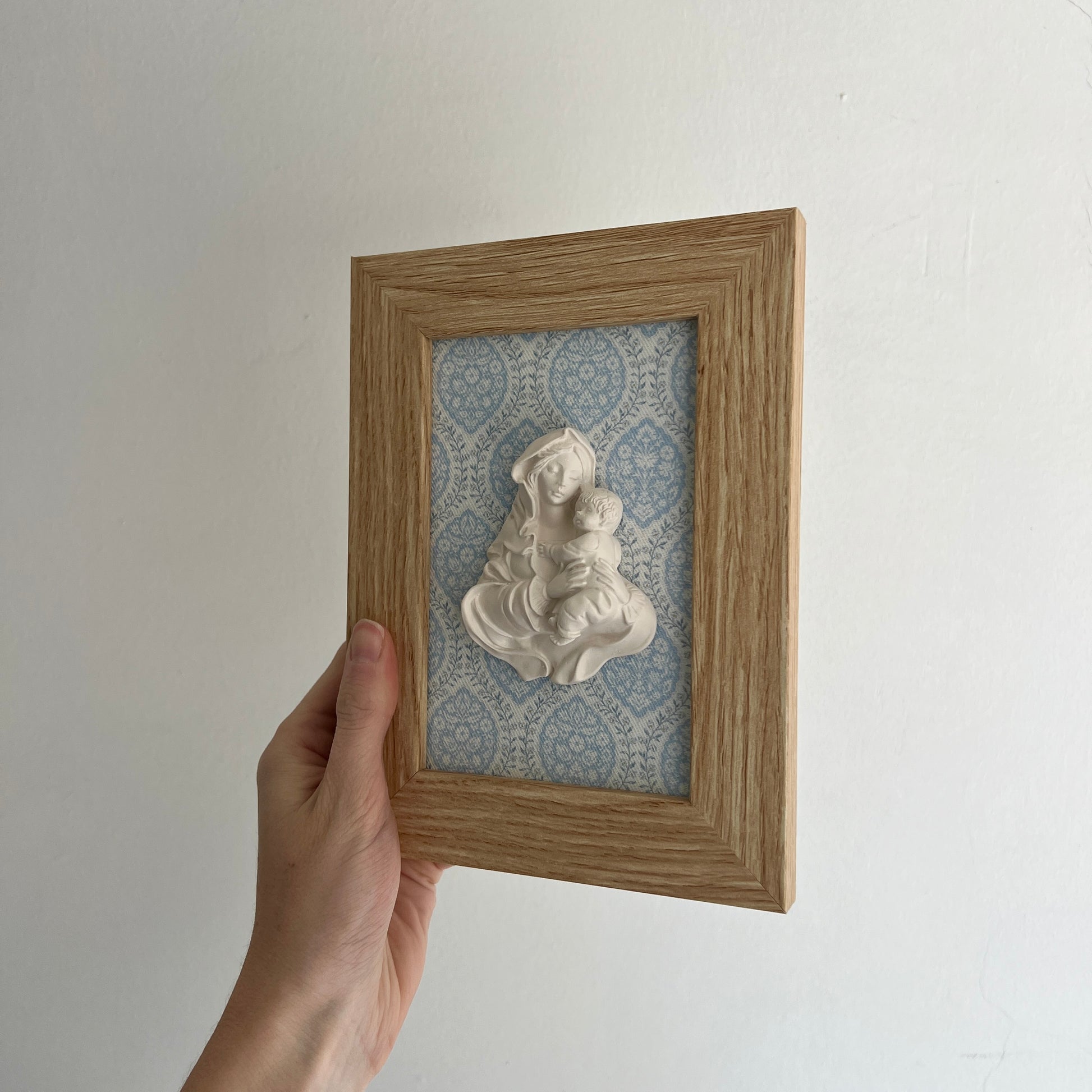 PRE-VENTA Cuadro Virgen de la Familia - Motivos azules (marco madera) | Se enviará el miércoles 10 de diciembre