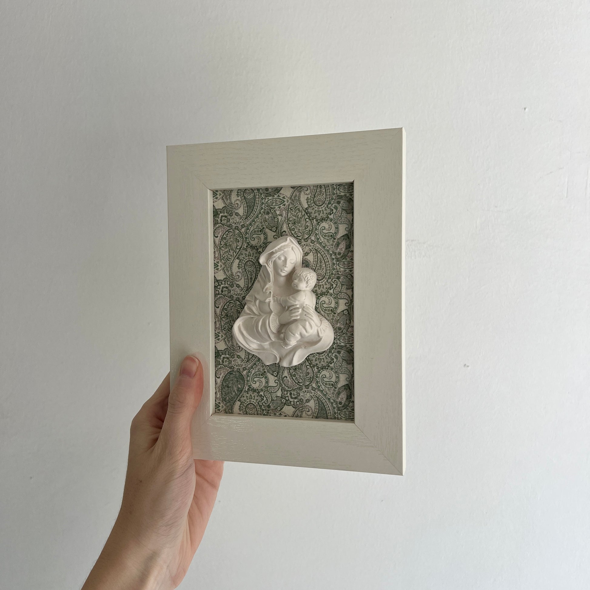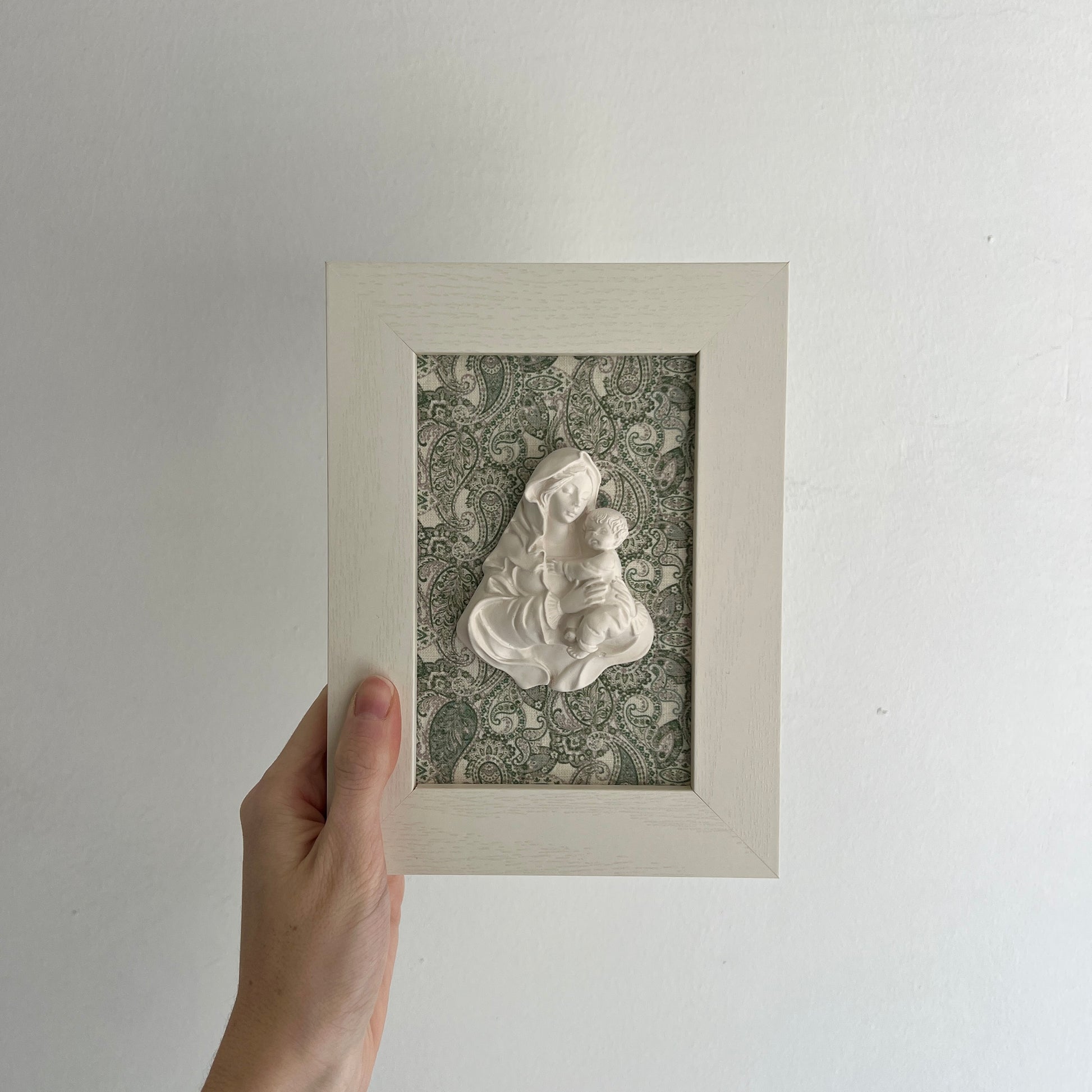PRE-VENTA Cuadro Virgen de la Familia - Paisley verde (marco blanco) | Se enviará el miércoles 10 de diciembre