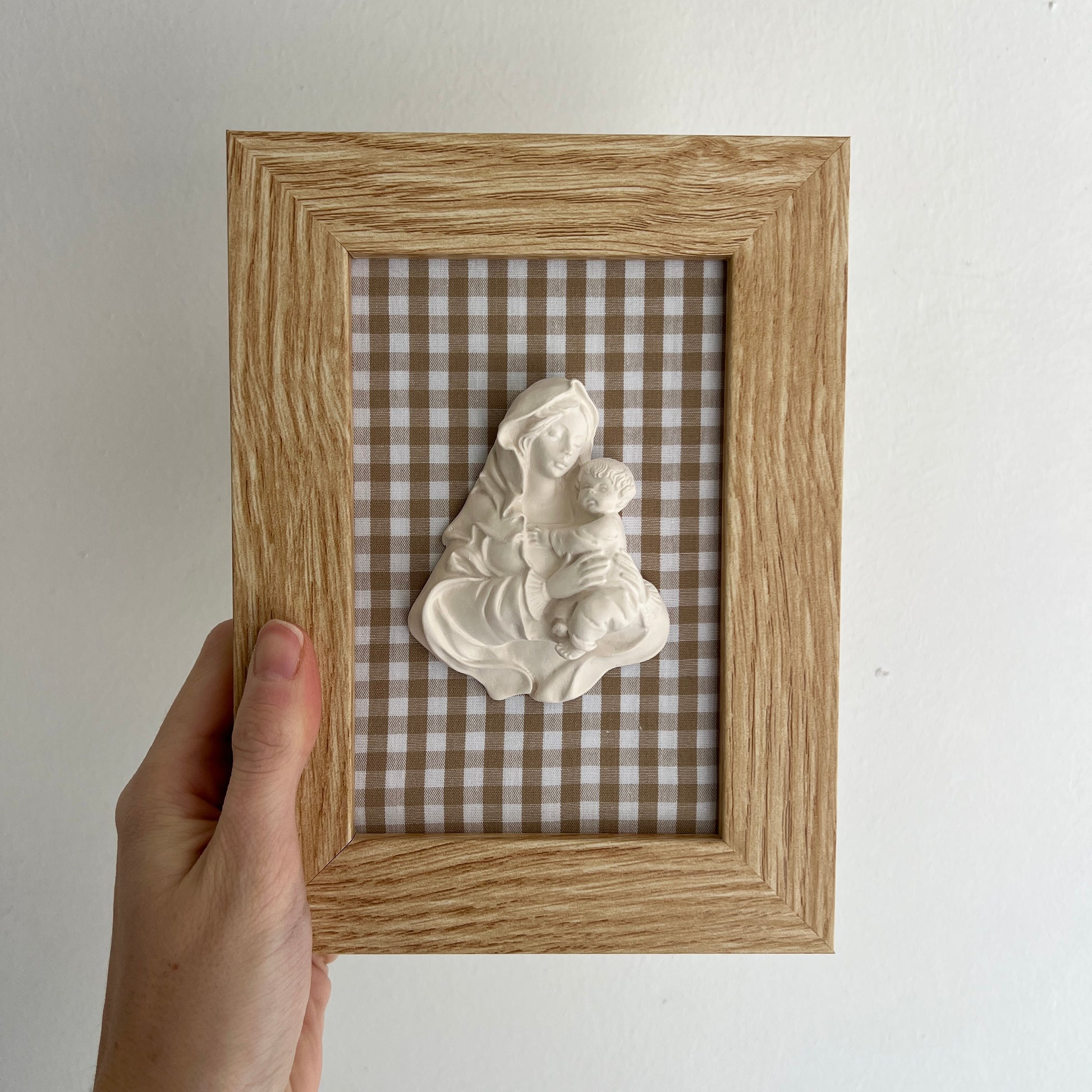PRE-VENTA Cuadro Virgen de la Familia - Vichy beige (marco madera) | Se enviará el miércoles 10 de diciembre