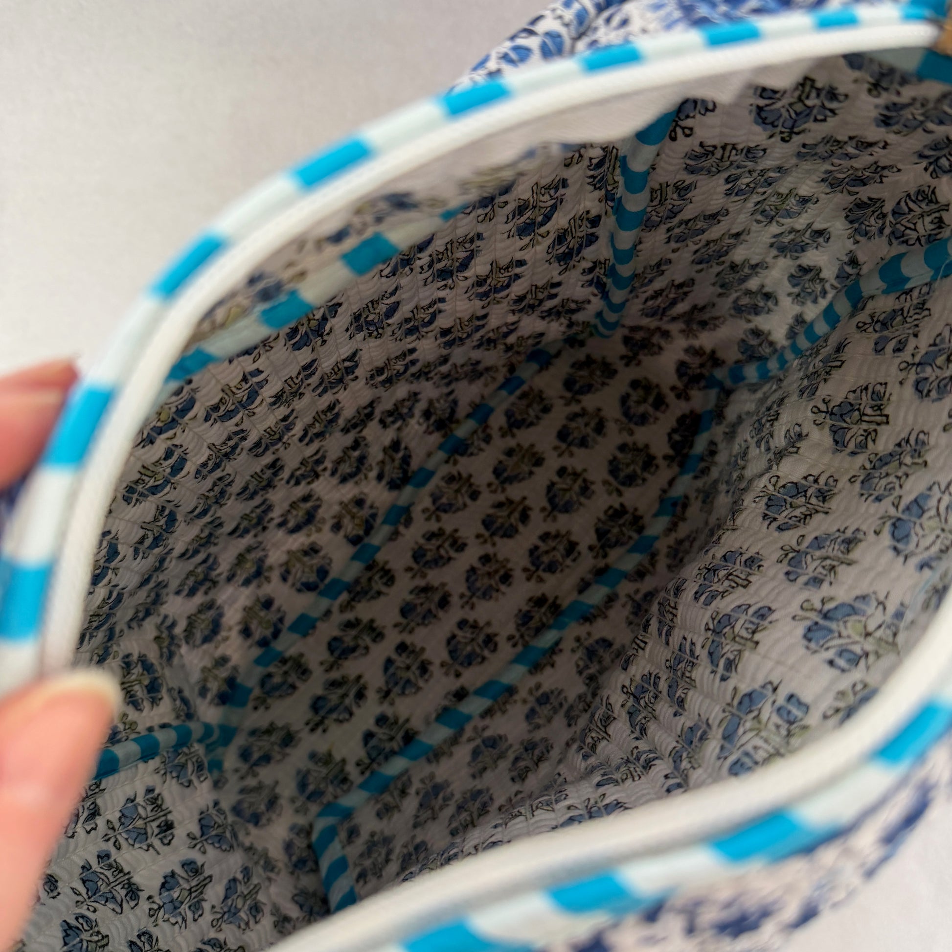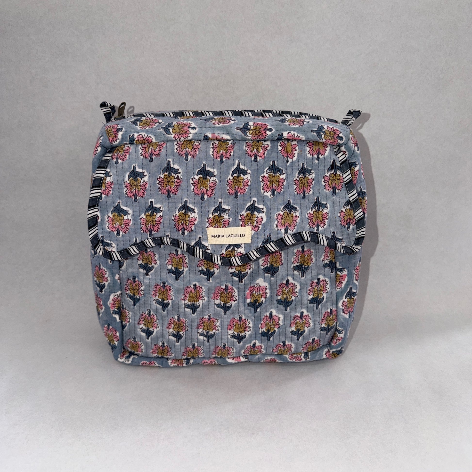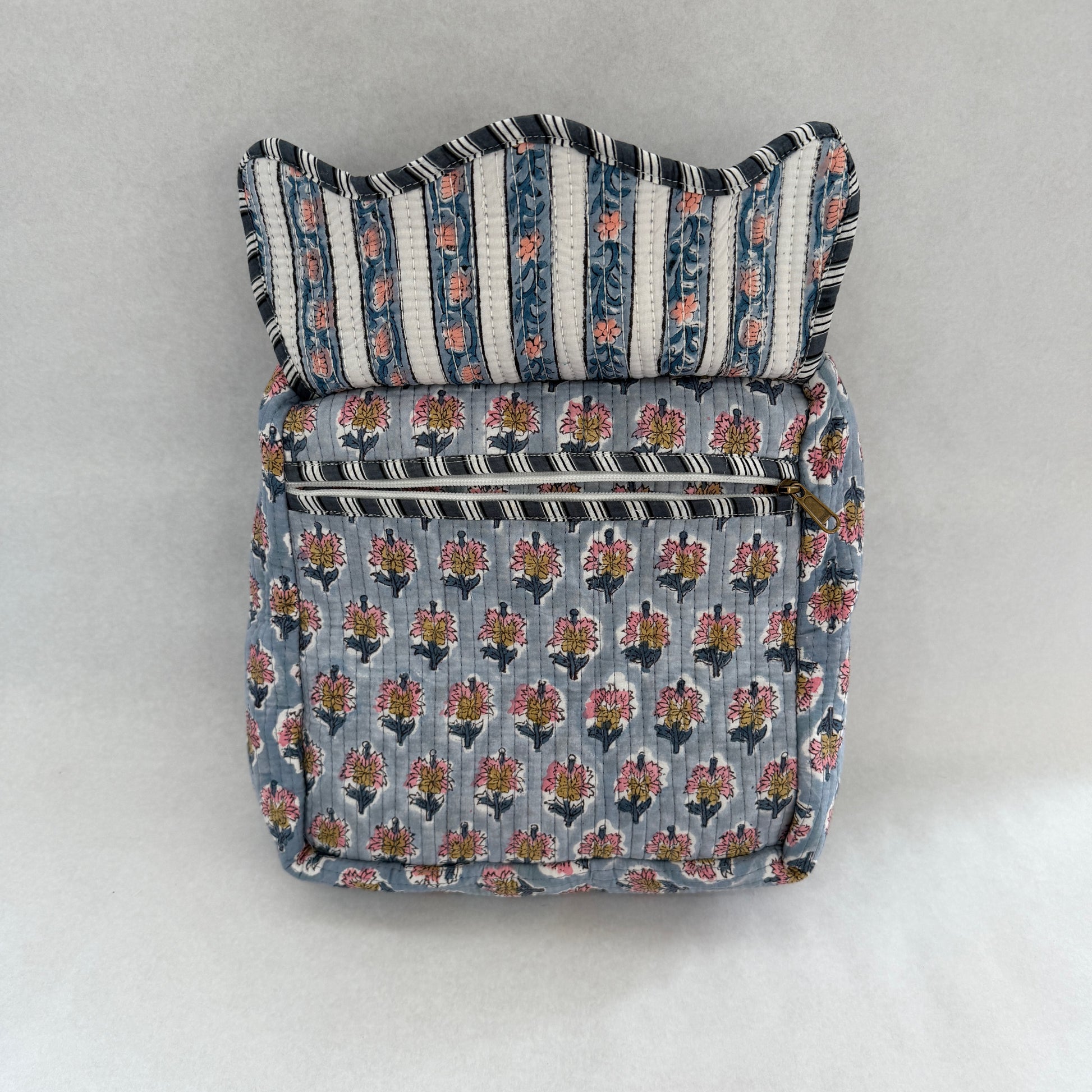 El Neceser EXTRA GRANDE PYAAS es la opción ideal para quienes necesitan máxima capacidad sin renunciar al diseño. Confeccionado en 100% algodón y fabricado artesanalmente en la India, destaca por su elegante estampado block print, que convierte cada pieza en un producto único.