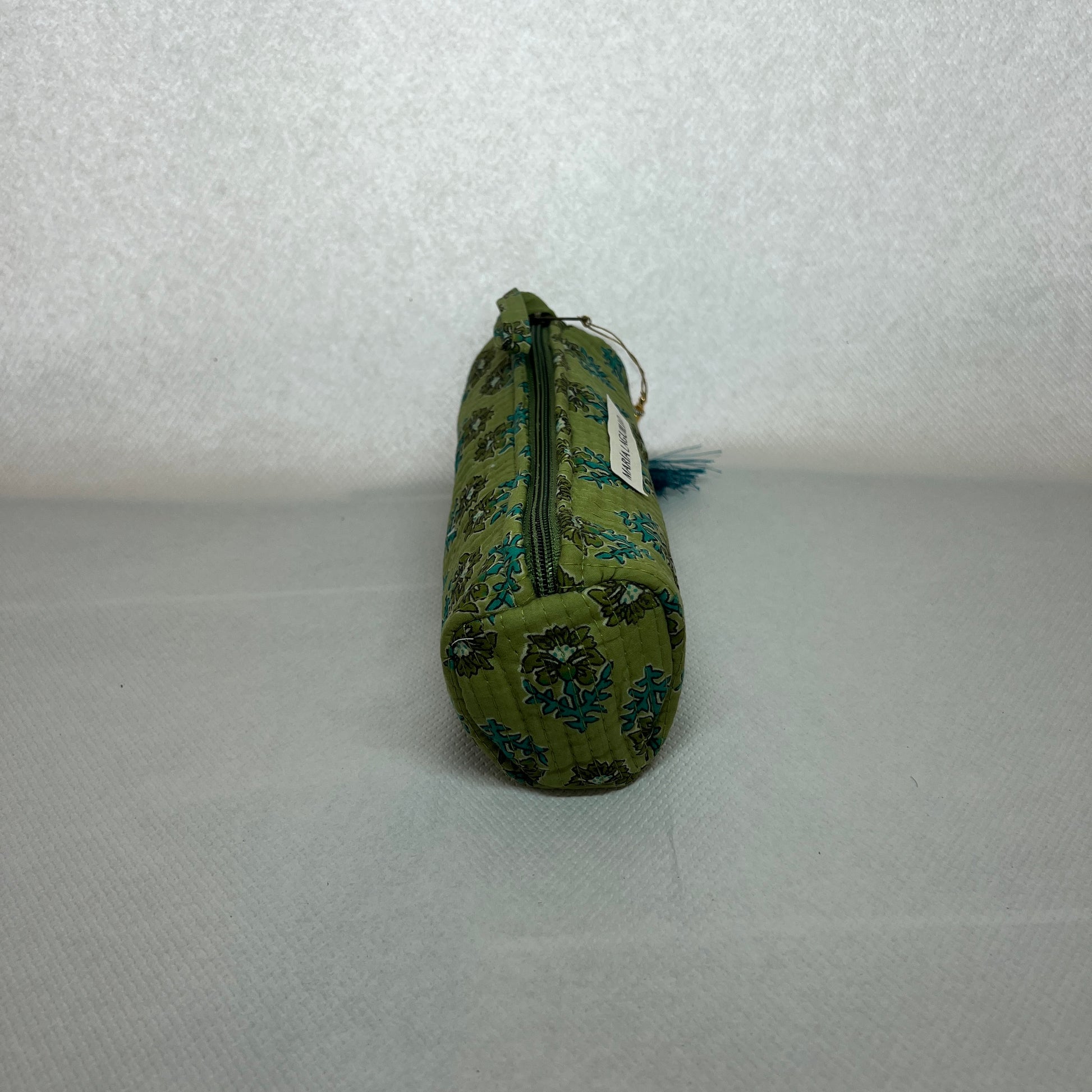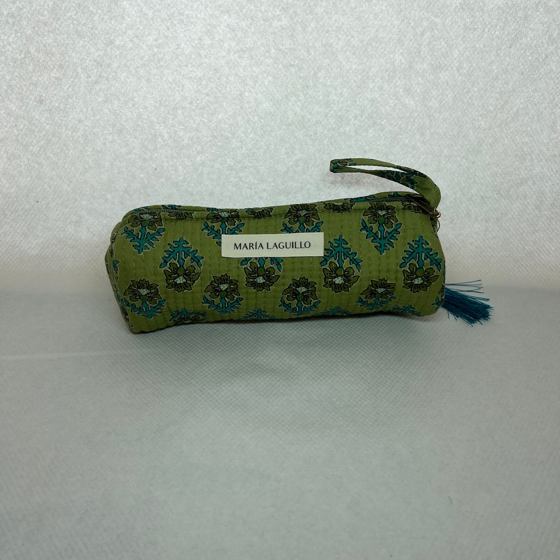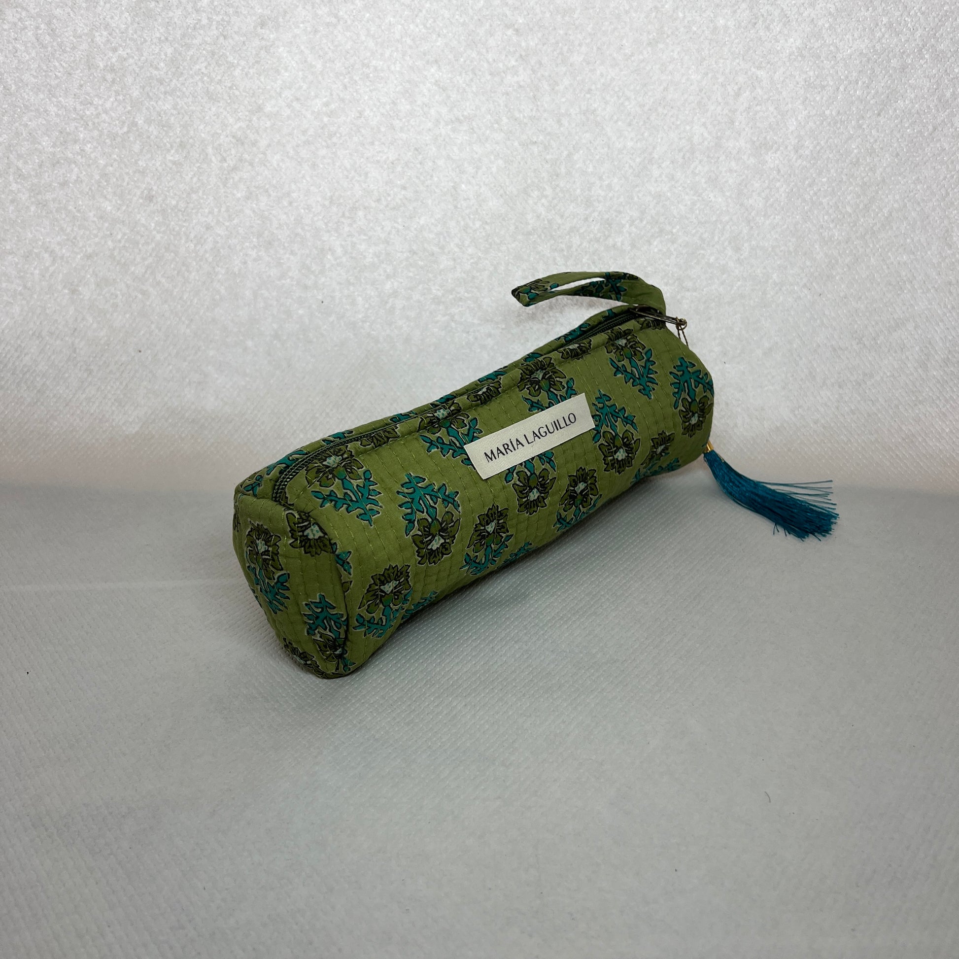 Neceser S MEYARA de tela "block print", tiene forma cilíndrica.