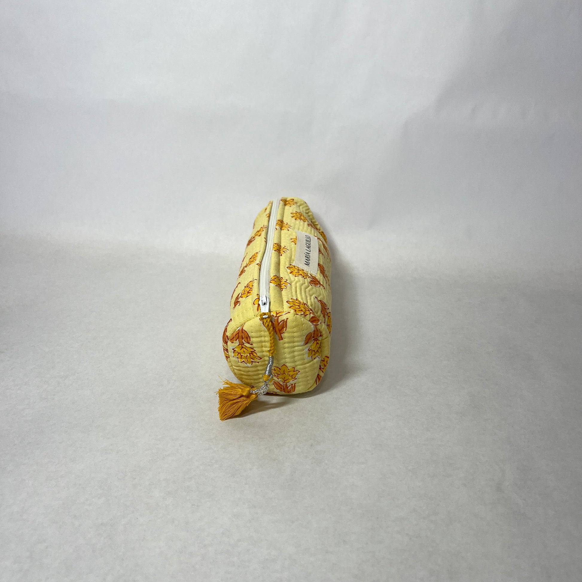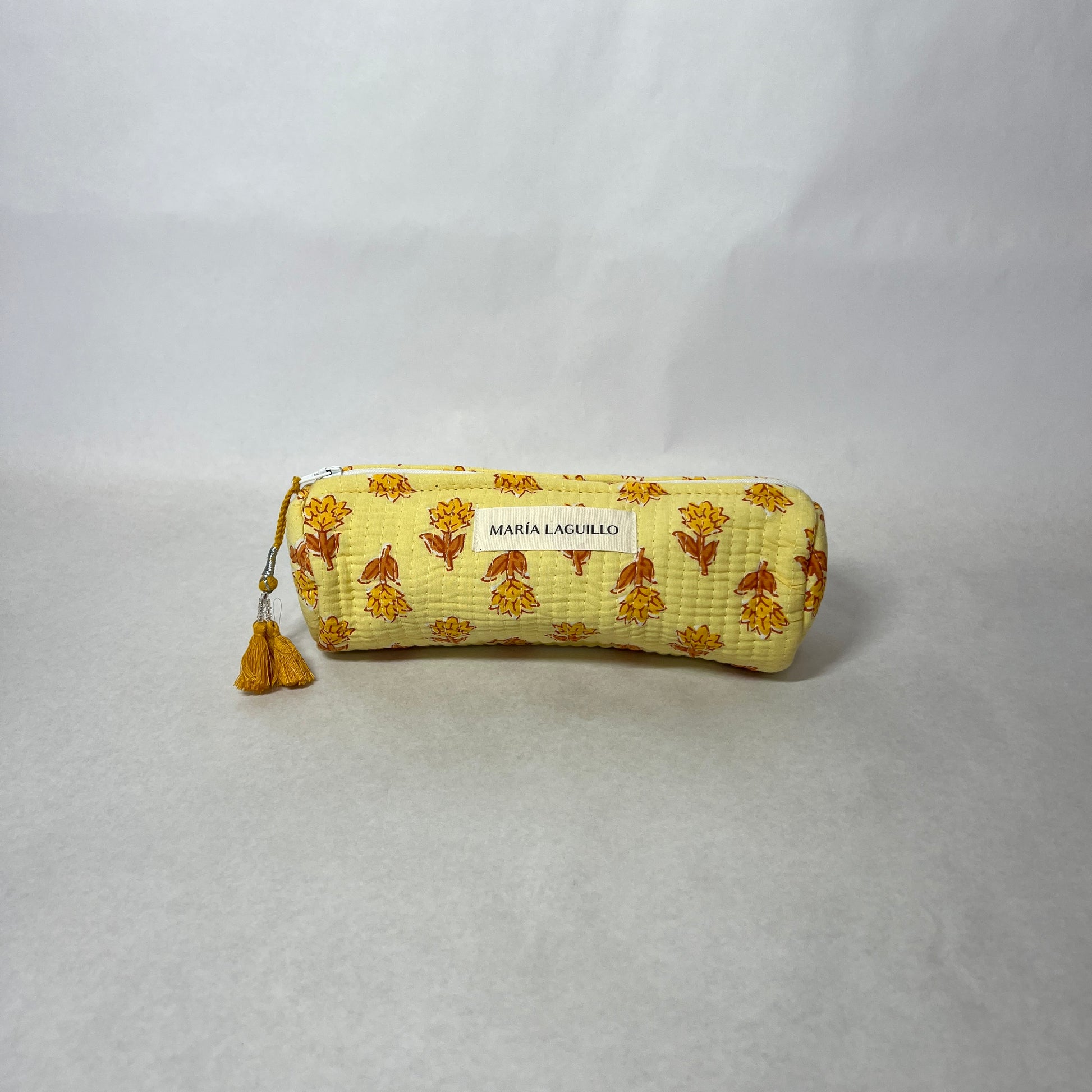 Neceser S TRIKA de tela "block print", tiene forma cilíndrica. Forro interior impermeable.