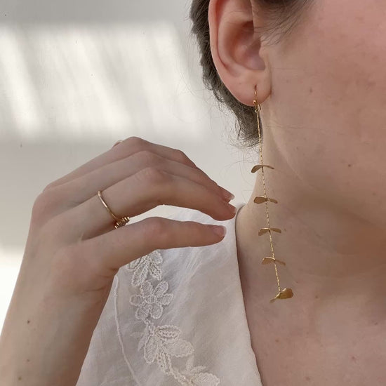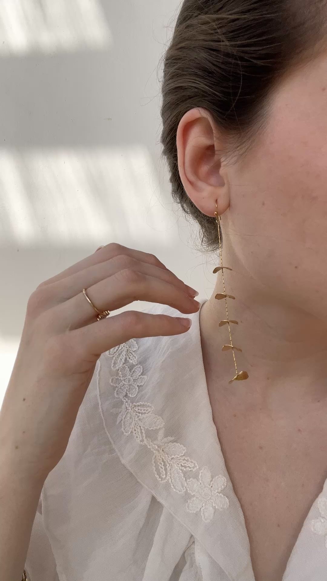Pendientes LARGOS HOJITAS DORADO de acero Inoxidable.